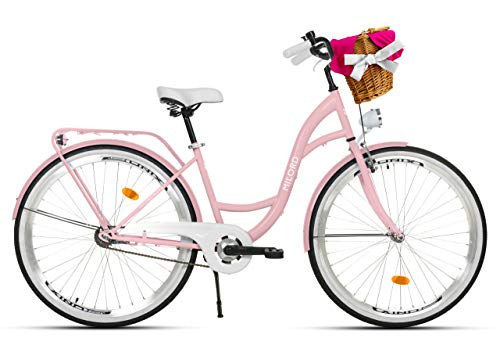 Specification: Milord. 26 inch 1 versnelling roze comfort fiets met mand en rugdrager, Nederlandse fiets, damesfiets, citybike…