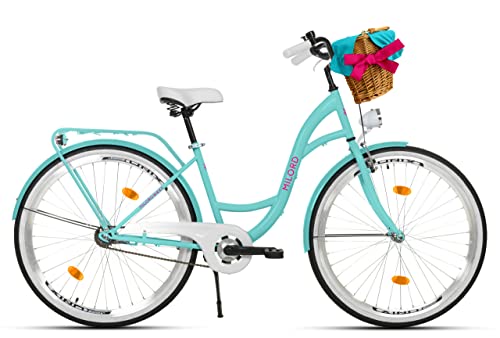Specification: Milord Comfort fiets met rieten mand Nederlandse fiets, damesfiets, stadsfiets, retro, vintage, 26 inch, 1 versnelling…