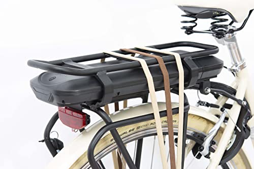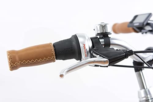 COMFORTABEL – De e-bike voor in de stad is 28 inch met een framemaat van 50 cm. De fiets heeft een comfortabel Monte Grappa zadel in kokosbruin, evenals een bel en een voorrek.